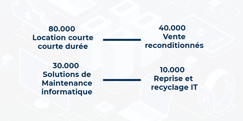 Aujourd’hui, NOVIRENT travaille avec de très nombreuses entreprises, dont une douzaine du CAC40, a élargi son offre en vente reconditionnée, en maintenance, en reprise et recyclage informatique.